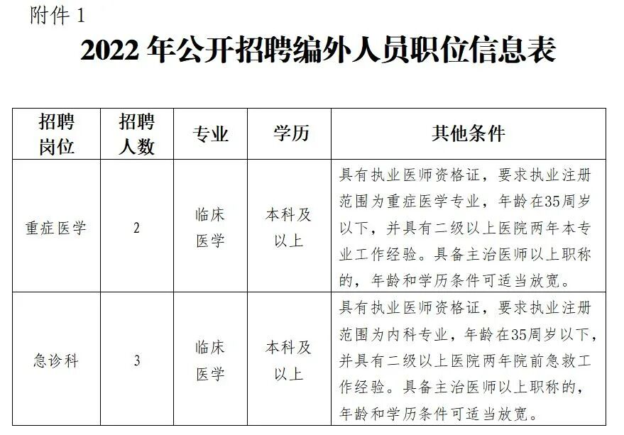 根據(jù)我院醫(yī)療救治工作需要,現(xiàn)面向社會公開招聘編外醫(yī)務(wù)人員,具體招聘事宜公告如下: