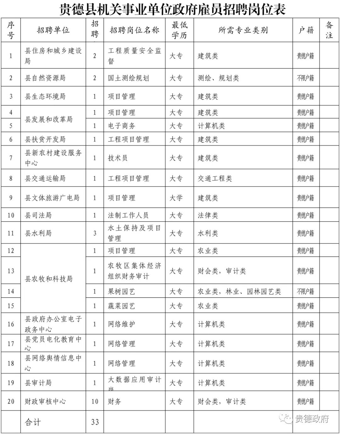 33人,大??蓤?| 海南州貴德縣公開招聘政府雇員公告 |
