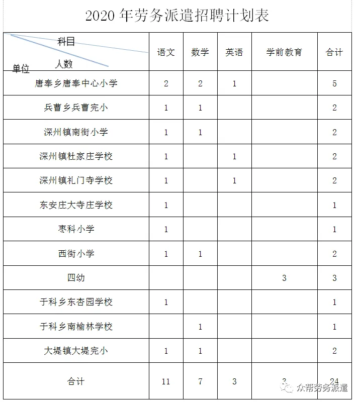 深州市教育局根據(jù)工作需要,現(xiàn)委托衡水眾幫勞務(wù)派遣有限公司招聘教師,具體方案如下: