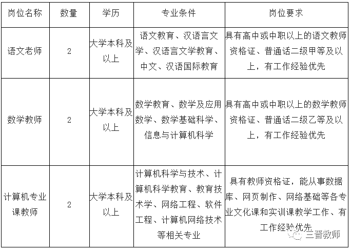 三、招聘條件(一)基本條件1.具有相應(yīng)崗位的教師資格或從業(yè)資格(高中或中職以上)。2.擁護(hù)中國共產(chǎn)黨的領(lǐng)導(dǎo),遵紀(jì)守法,熱愛教育事業(yè),具有良好的政治思想素質(zhì)、敬業(yè)精神、團(tuán)隊(duì)合作精神和職業(yè)道德,追求卓越。3.身心健康,能勝任教育教學(xué)和管理服務(wù)工作。(二)崗位條件1.大學(xué)本科及以上學(xué)歷。2.有扎實(shí)的學(xué)科專業(yè)功底。3.普通話流暢,語言表達(dá)能力強(qiáng),思維敏捷,善于溝通,樂于奉獻(xiàn)。4.理解認(rèn)同并愿意踐行“一切為了學(xué)生發(fā)展”的辦學(xué)理念和育人模式,對(duì)基礎(chǔ)教育有熱情,有追求。5.年齡在35歲以內(nèi)。四、崗位待遇1.所有錄用人員實(shí)行聘任制,人事管理采取勞務(wù)派遣模式,按規(guī)定辦理“五險(xiǎn)”等。2.基本工資按小店區(qū)臨聘教師制定的標(biāo)準(zhǔn)逐年遞增。3.績效工資由學(xué)校按績效考核辦法予以發(fā)放。五、招聘程序(一)報(bào)名時(shí)間:2022年8月30日起至9月1日截止(二)報(bào)名方式1.應(yīng)聘者先將應(yīng)聘學(xué)科及個(gè)人簡歷投遞郵箱:wbnhr988364@163.com(郵件格式為應(yīng)聘學(xué)科+姓名+電話)2.通過篩選簡歷會(huì)通知候選人參加面試;3.面試通過的候選人會(huì)進(jìn)入試講環(huán)節(jié)(試講時(shí)間為15分鐘)。聯(lián)系人:馬老師聯(lián)系方式:15035117525(三)報(bào)名時(shí)所需材料1.學(xué)歷證書照片(第一學(xué)歷)2.個(gè)人簡介,內(nèi)容包括姓名、性別、婚否(已婚者說明孩子個(gè)數(shù)、年齡)、有效聯(lián)系方式、現(xiàn)住址、應(yīng)聘學(xué)科、工作經(jīng)歷等。3.教師資格證照片通過審核者,電話通知符合條件的應(yīng)聘教師參加面試,請(qǐng)保持暢通