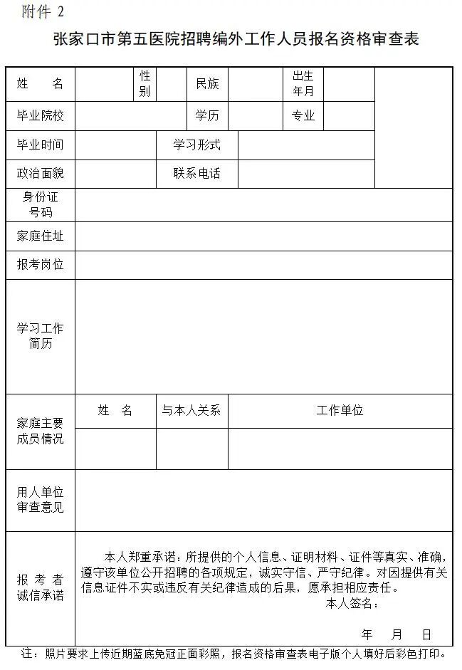 附件2:張家口市第五醫(yī)院招聘編外工作人員報(bào)名資格審查表