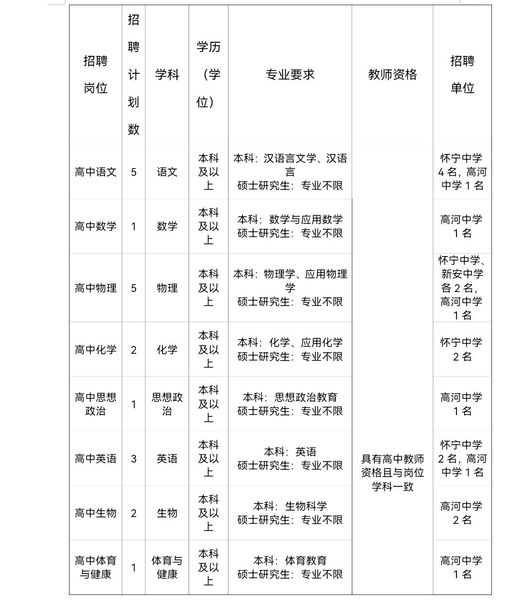 3.教師資格:報考人員須在2023年7月31日前提供報考崗位要求的高中教師資格證書。