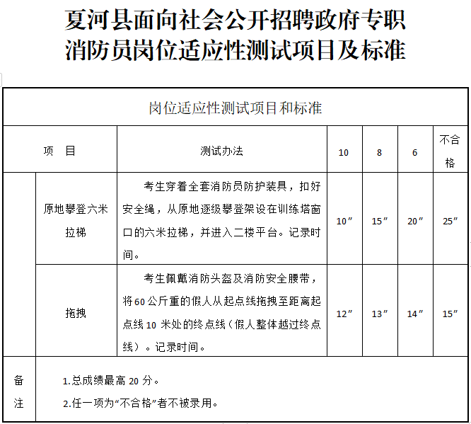 3.夏河縣面向社會公開招聘政府專職消防員崗位適應(yīng)性測試項目及標(biāo)準(zhǔn);