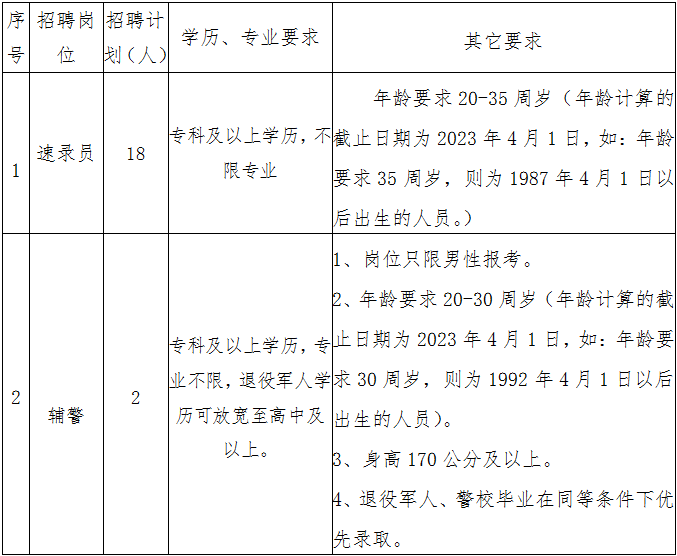 1、速錄員:18名;