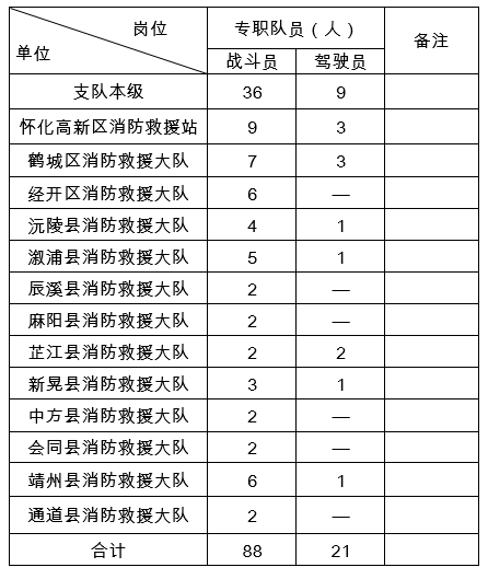 為有效履行防范化解重大安全風險、應對處置各類災害事故的職責使命,提升全市消防救援隊伍應急救援能力,懷化市消防救援支隊面向社會公開招聘109名政府專職消防員,現(xiàn)將招聘有關事項公告如下: