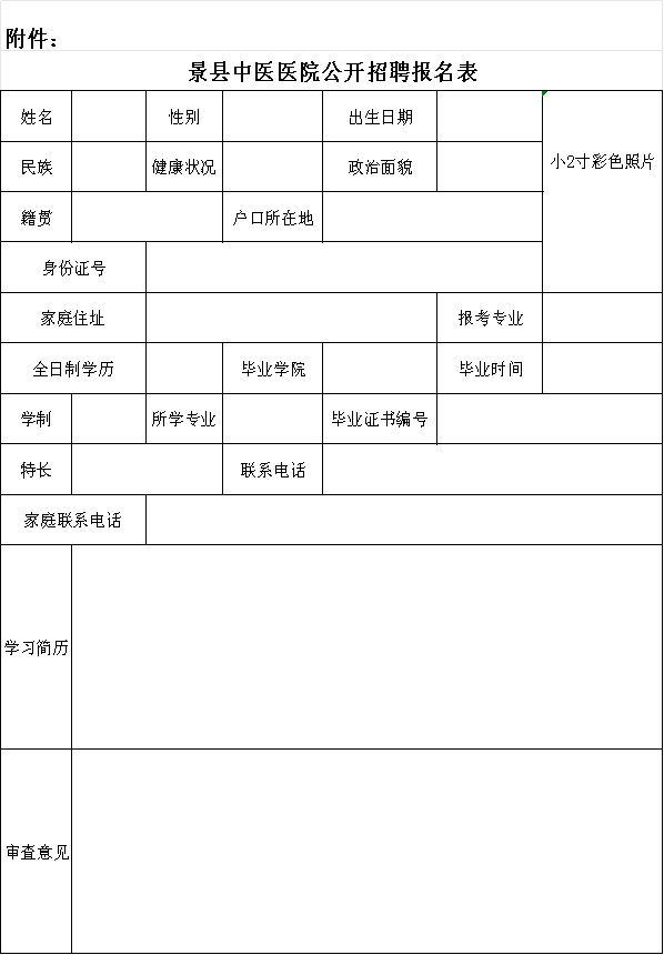 景縣中醫(yī)醫(yī)院公開(kāi)招聘報(bào)名表
