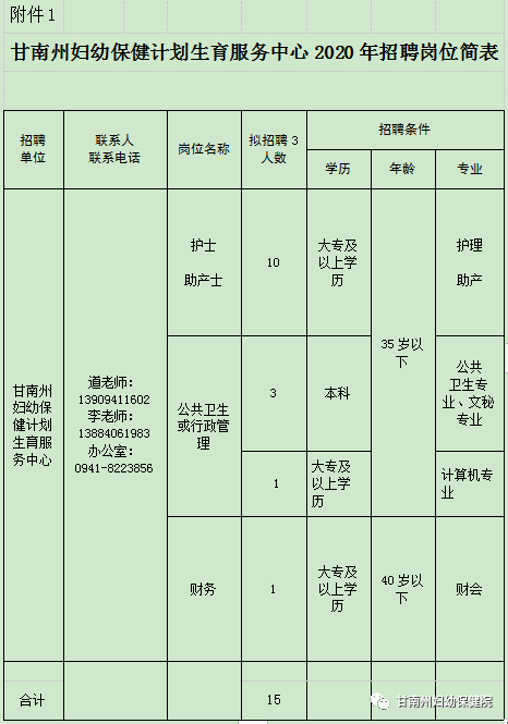 附件:1、甘南州婦幼保健計(jì)劃生育服務(wù)中心2020年招聘崗位簡表