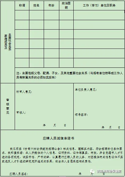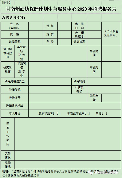 2、甘南州婦幼保健計(jì)劃生育服務(wù)中心2020年招聘報(bào)名表