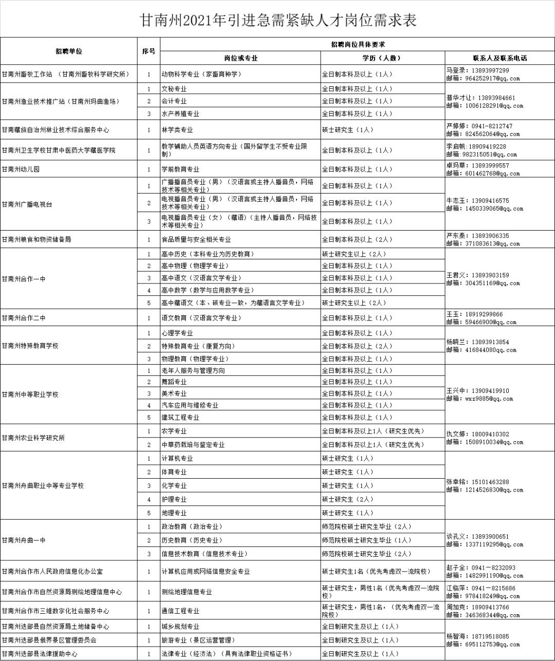 甘肅甘南州引進急需緊缺人才48名公告 |