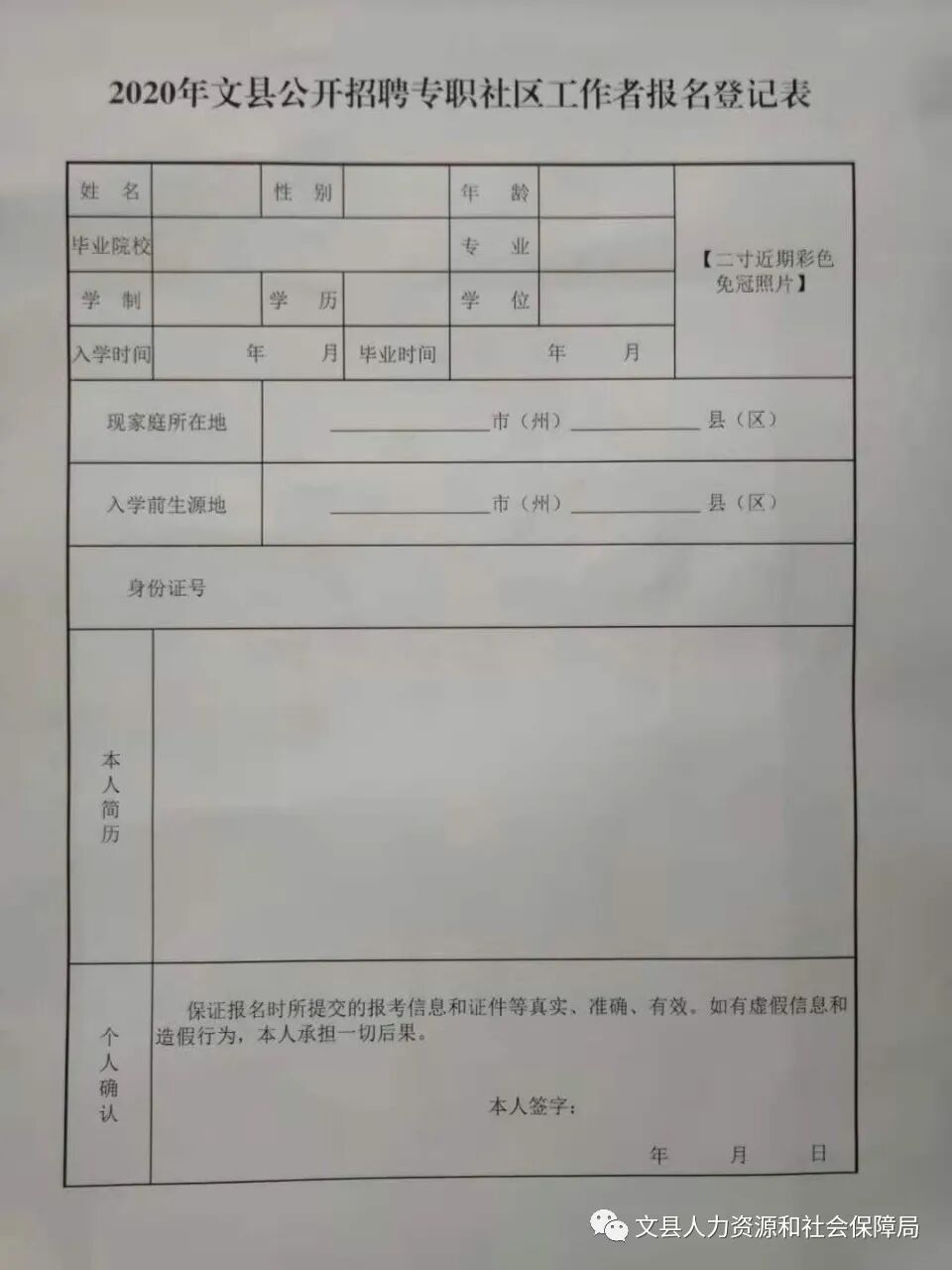 專職社區(qū)工作人員報名時,需提供《2020年文縣公開招聘專職社區(qū)工作者報名登記表》一份,本人畢業(yè)證、報道證或擇業(yè)通知書,有效期內(nèi)的身份證、戶口本原件及復印件,缺以上證件者,將不予受理報名事宜。