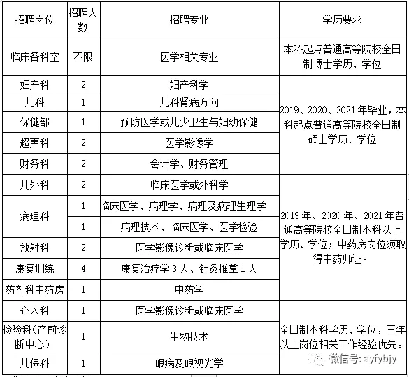 普通高等院校全日制本科以上學(xué)歷畢業(yè)生和專業(yè)技術(shù)人員。招聘崗位、條件及人數(shù)見《安陽市婦幼保健院2021年公開招聘崗位表》(詳見附件)