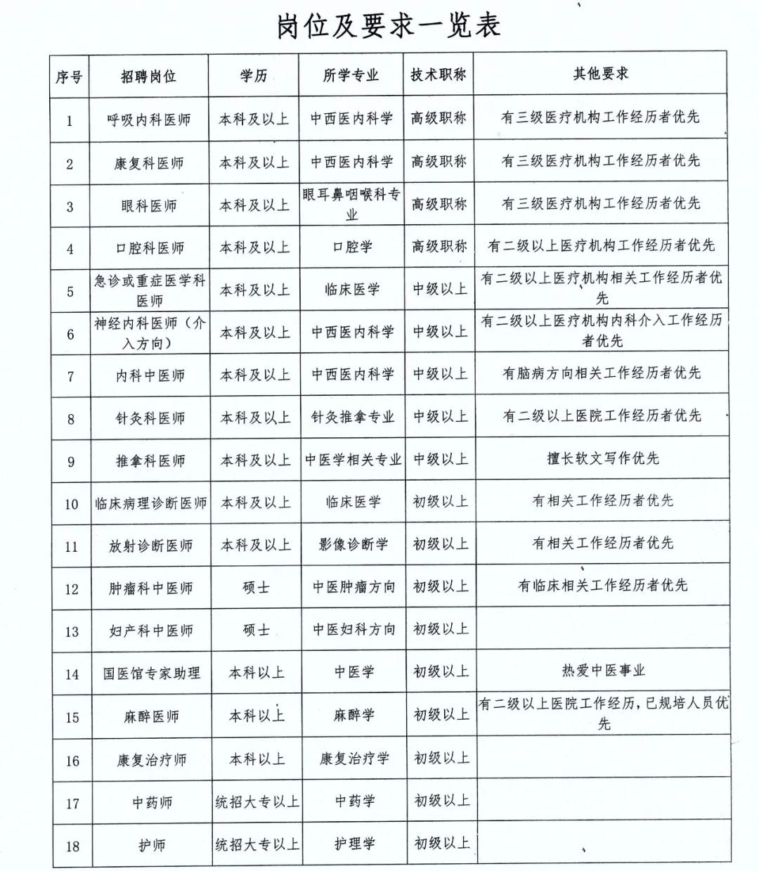 (一)中醫(yī)類別專業(yè),博士、碩士研究生學(xué)歷,人數(shù)不限,應(yīng)往屆均可。