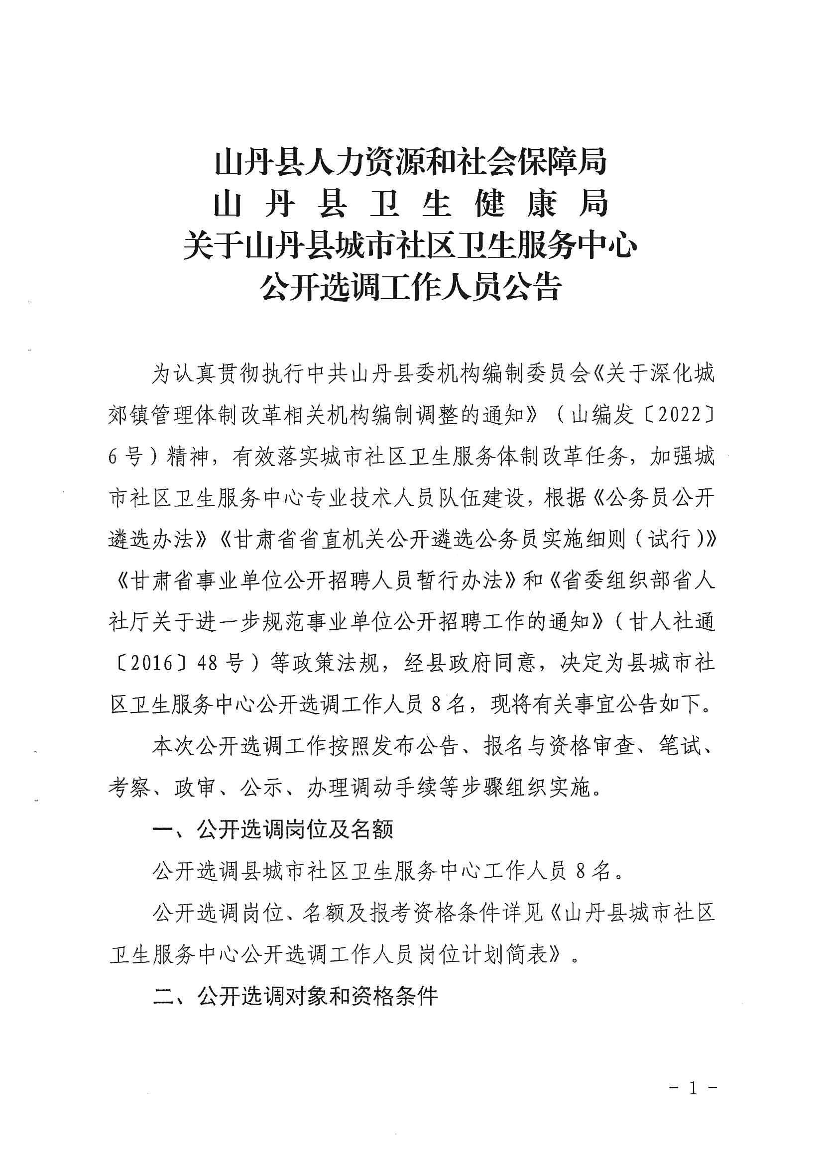 甘肅張掖市山丹縣城市社區(qū)衛(wèi)生服務中心選調(diào)公告 |