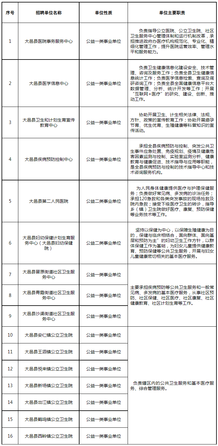 附件:2023年度成都市大邑縣衛(wèi)生健康局所屬16家事業(yè)單位公開招聘81名工作人員崗位表