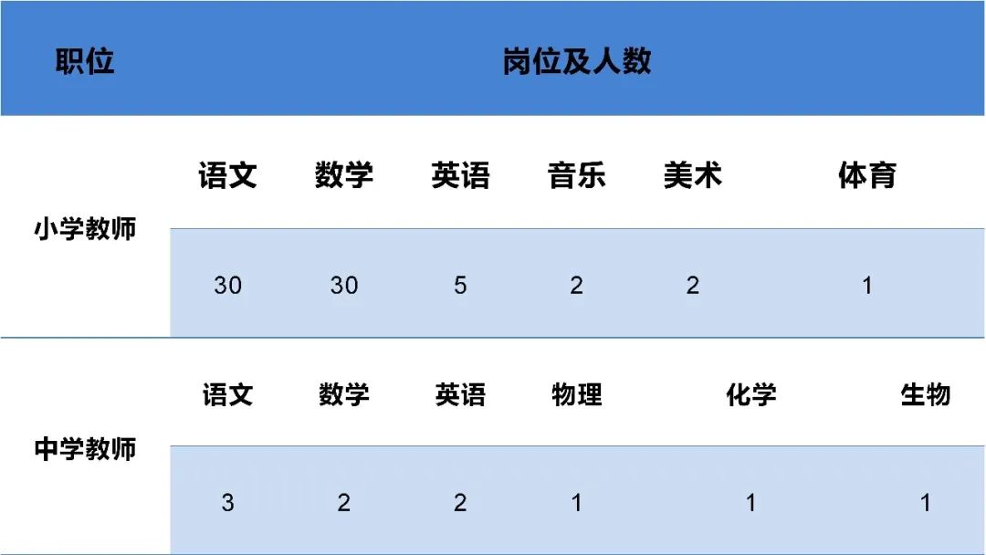 本次招聘共招80人,其中小學(xué)教師招聘70人,初中教師招聘10人,具體詳情見以下表格。