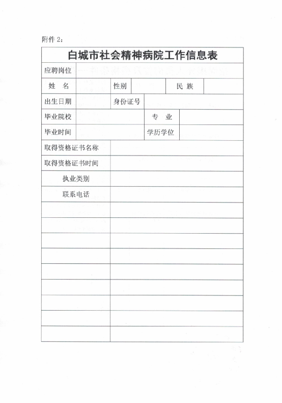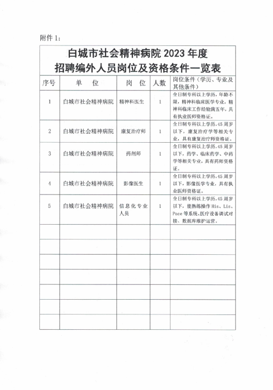 附件1:白城市社會精神病院2023年度招聘編外人員崗位及資格條件一覽表