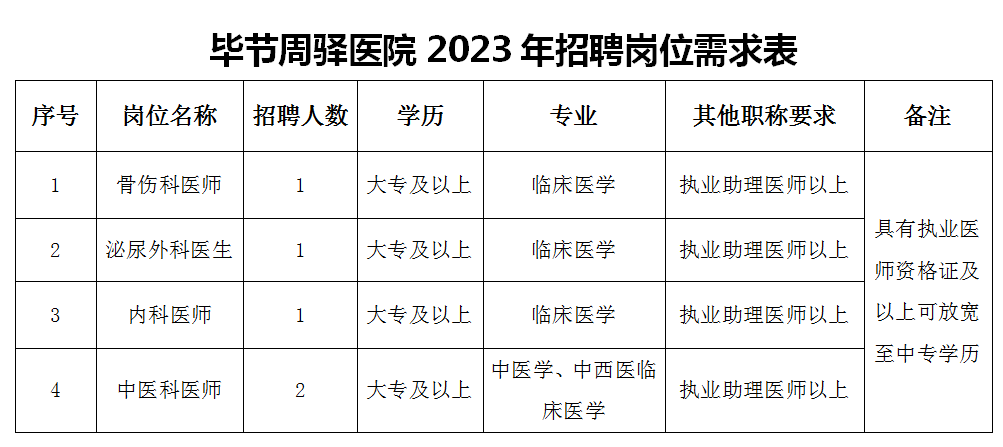現(xiàn)場報名:攜簡歷、畢業(yè)證、學(xué)位證、身份證、執(zhí)業(yè)證、資格證、職稱證原件等資質(zhì)材料,至畢節(jié)周驛醫(yī)院綜合樓四樓依法行醫(yī)辦公室報名。